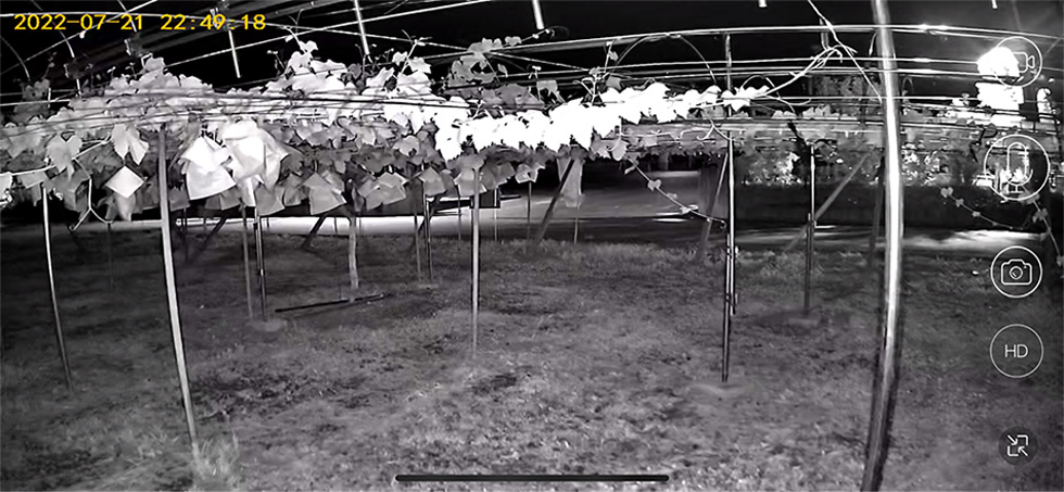 収穫物の盗難、動物による農作物の被害などを撮影可能です。検知機能による犯罪の抑止、ライブ映像による動物侵入時の対応の決定などを、離れた場所から行なえます。